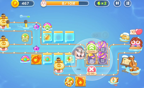 第8波,冰冻兔登场,能手动打就手动打,兔子太多时就随意吧。注意解冻住的炮塔即可。
