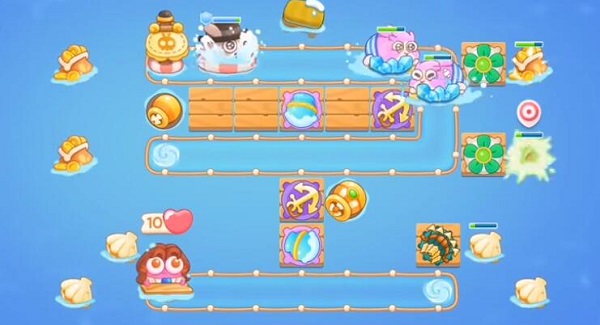 2、第2-5波,造鱼雷塔、船锚、雪球,雪球可以减速跑的很快的兔子。