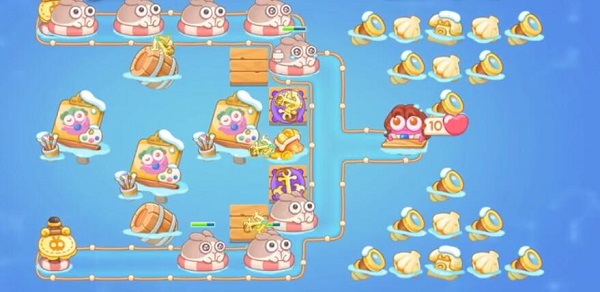 1、开局地图送两个船锚,升级船锚清理兔子和障碍物。