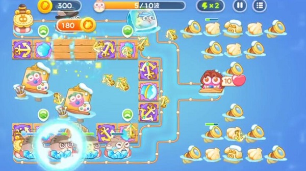 2、然后放置两个雪球炮减速兔子,再放置两个船锚,增加伤害。