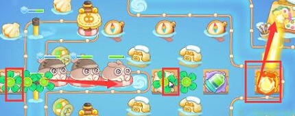 1、这一关地图上会自带两个鱼雷炮,可以升级它们清怪和障碍物。