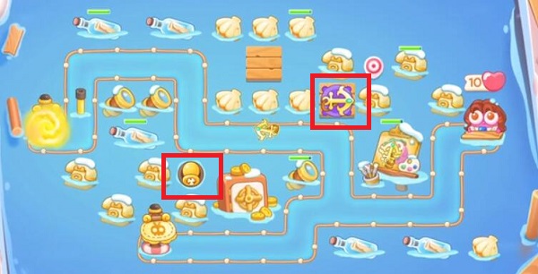 3、第六波基本可以道具全清,第七波放置雪球炮,给兔子减速。