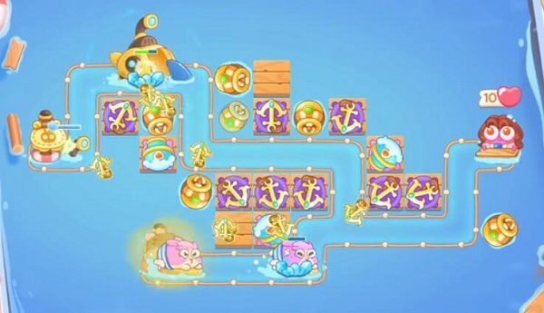 2、这一关障碍物比较多,在没有兔子时尽快清理,再增加鱼雷塔和船锚。