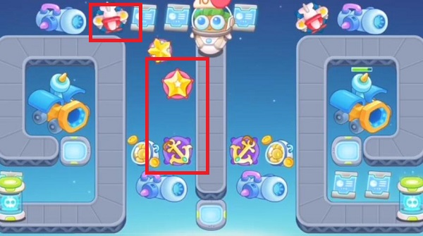 1、开局在右边上面放个玩具飞机,可以快速清理一排的道具和怪,然后在中间位置放个船锚。