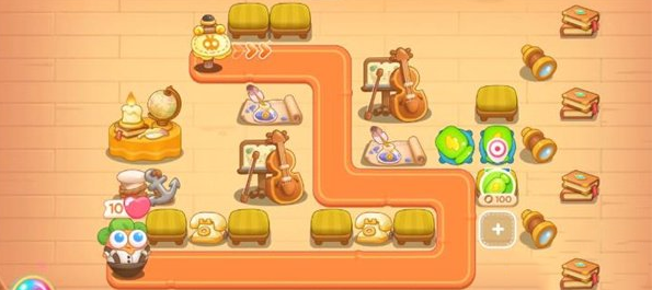 第一波建议大家选择瓶子炮,在下图位置建造瓶子炮,将板凳快速清理,再建造一些瓶子炮,前端后端分别建造充足的炮塔,前端的炮塔锁定大提琴清理。