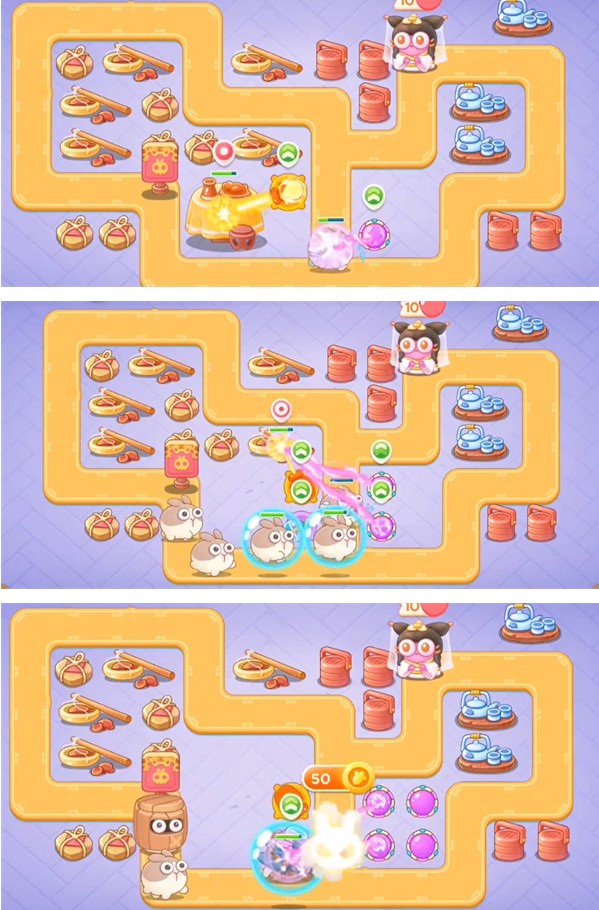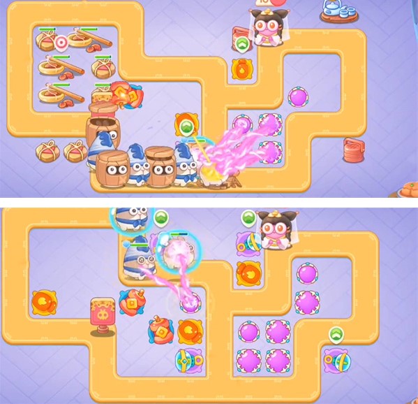 6.然后在右侧的时候我们要建造很多的紫球,保护我们的萝卜就靠它了,还有清理障碍物也是很快的。