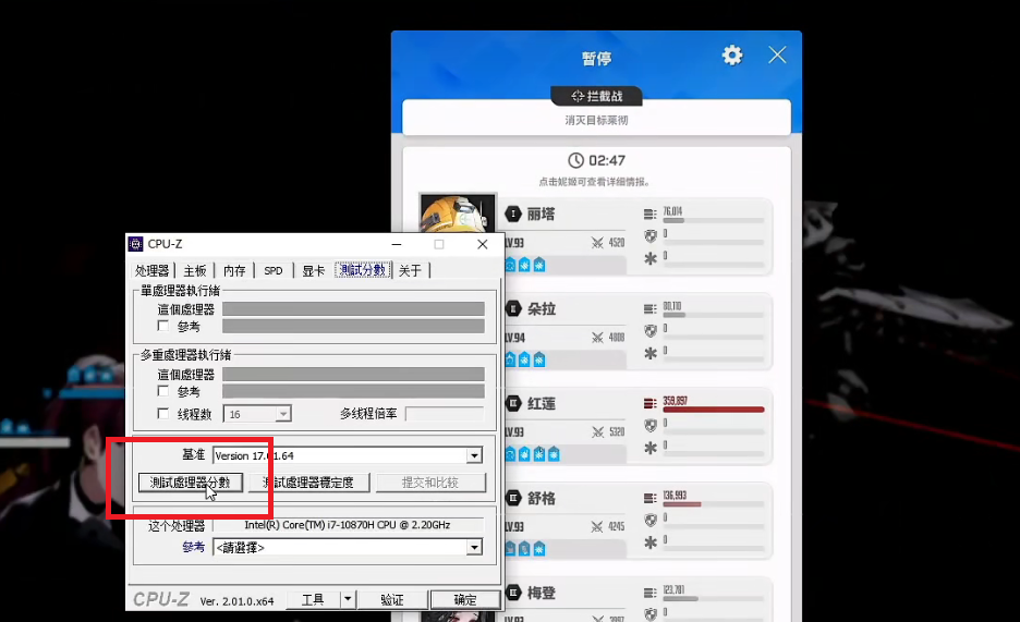 3、点击“测试处理器分数”,由于模拟器十分吃cpu,点击之后游戏会变的非常的卡。