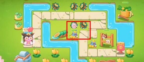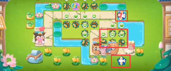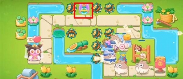 5.第四波小心滚滚兔,红框位置处建造一个泡泡塔,延缓敌人速度;