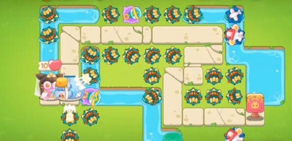 8.这一关的障碍物是非常多的,河道上的莲花千万别漏掉,最后一波将场上剩余道具全部拆除即可;