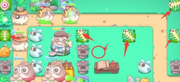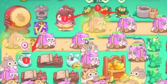 3、在出口放置满级毒针清怪,后方放置鱼刺开图,先开图之后再给乞丐兔打鸡腿,不然防守的力量不够。