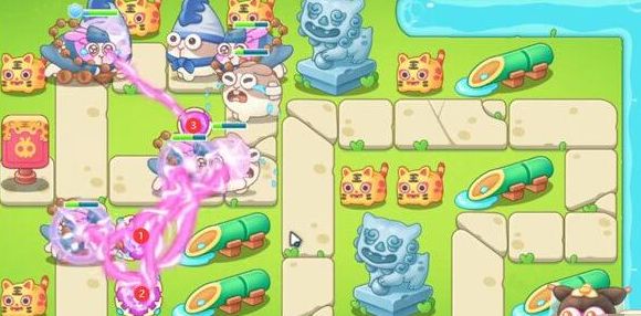 5、接着我们第四波魔法球优先清石狮子,清完有4格空地,都放置一级魔法球,再清理附近小障碍物。
