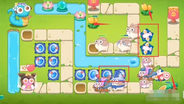 1、开始的时候在右侧放置一个飞机,先打丹药,帮助小青恢复,飞机伤害很高,前期打两次兔子就残血了,没兔子的时候,清理左侧障碍物。