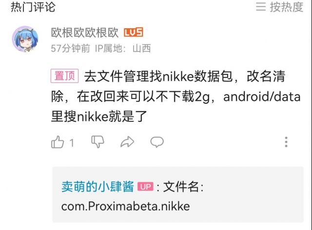 就是用一个合适有权限的文件管理器,打开Android/data/找到com.proximabeta.nikke文件夹,随意重命名一下;