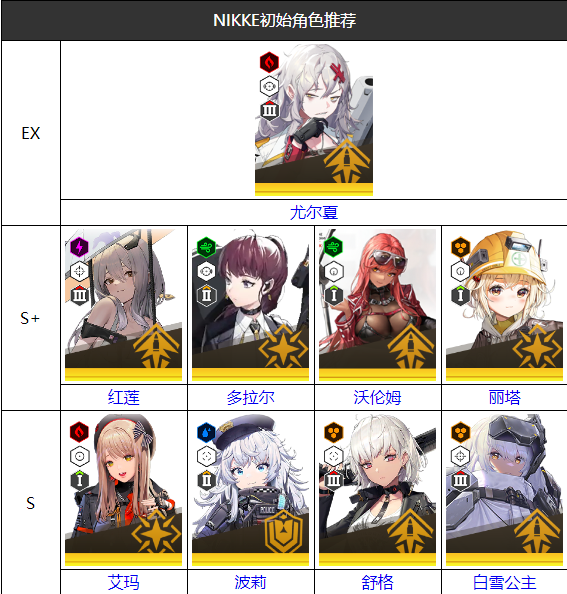 以上就是小编整理带来的《NIKKE胜利女神》初始角色推荐,更多相关游戏攻略,请点击关注手游网!