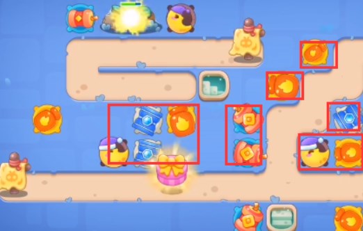 4、在图中位置放炮塔将周围的道具全清。