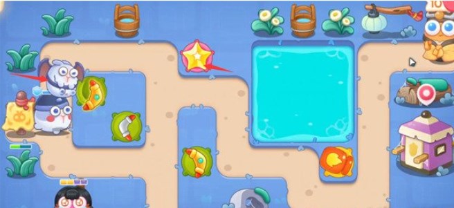 9、在如图所示位置补满回旋镖,并在水中放置一个星星塔,将他们升至满级。