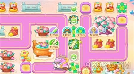 2.钱袋拆完后,在右上角补一个三级的风扇,然后让鱼骨去锁定下方的茶壶,茶壶的位置再建一个一级的风扇,还是等这一波兔子全部解决后,就去锁定中间的钱袋。
