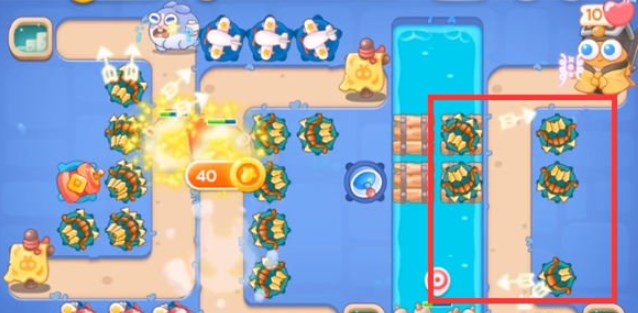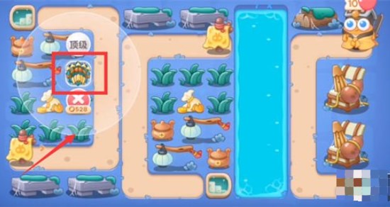 3.钱袋被打掉后,再放置多重箭,苏肯定下方的石桌子,打掉的位置放一个满级飞机,这一波向右进行开图;