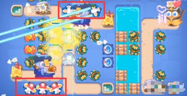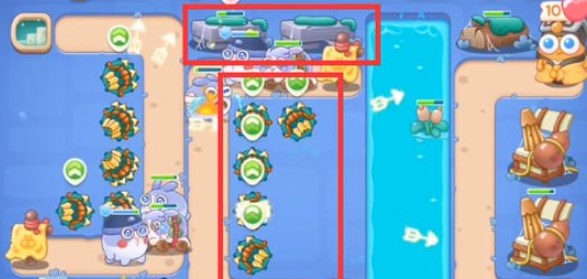 1.开局现在下面的地方放一个多重箭,并升级到满级,锁定下方的小草,打掉后,空出的位置依然是放多重箭;