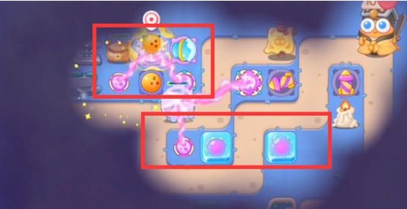 1.开户在下图位置建造一个魔法球,一个烟花塔,锁定下方的障碍物;