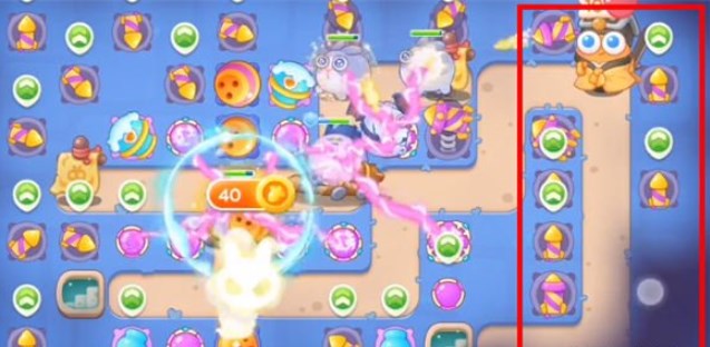4.地图左半段的障碍物消除后,将炮塔中的雪球塔升级至满级,减速敌人;