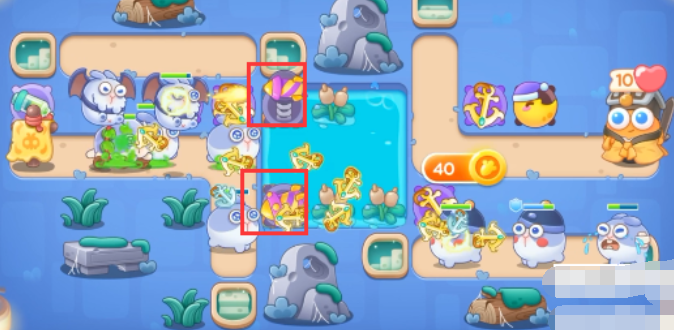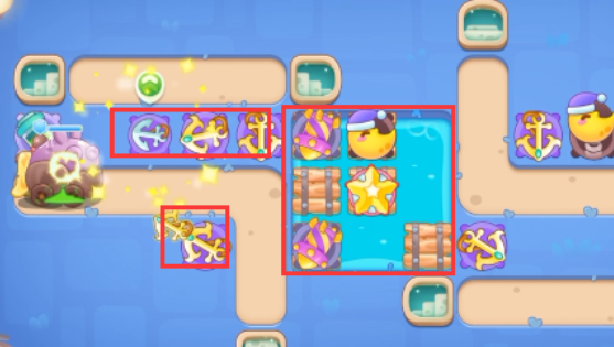 1、可以用毒针、月亮和船锚,这关主要用船锚。