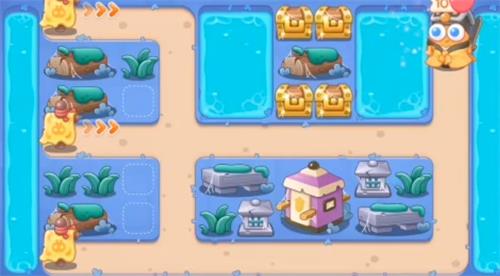 2.第二波中间宝箱清掉变为星星塔,第四波左侧加1船锚,之后升一级,再升满级即可。