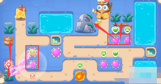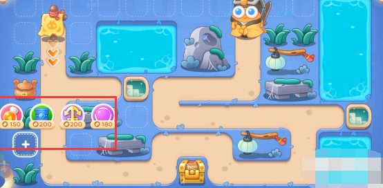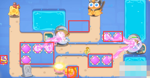 1、首先这关有魔法球、喷火器、船锚等防御塔,主要用魔法球过这关。