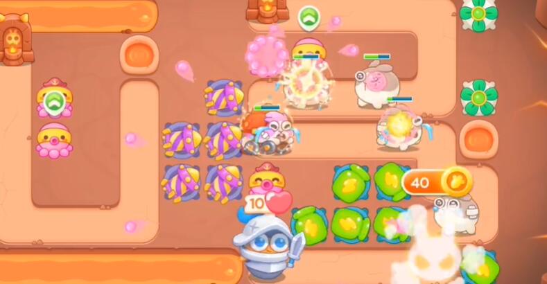 2、等下方的障碍清理掉之后,在放置一个乌贼炮塔,慢慢升到3级。