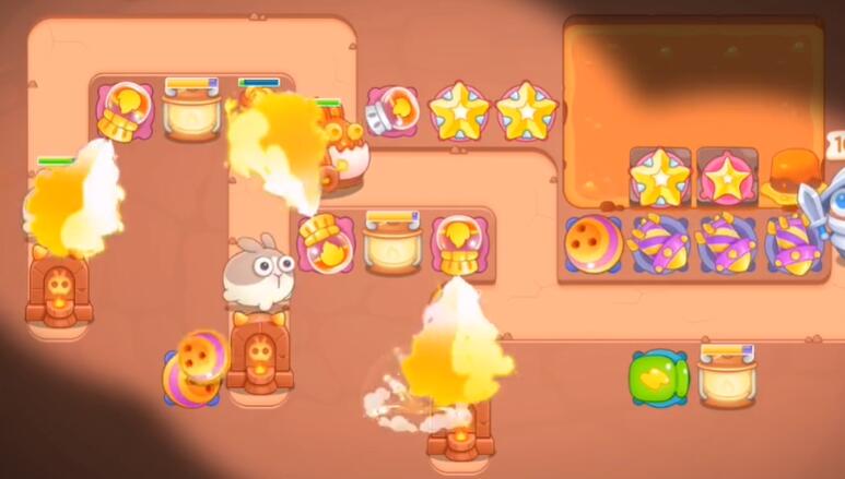 1、这一关能够使用的防御塔有:雷瓶、星星、保龄球、火箭、火瓶,地雷。