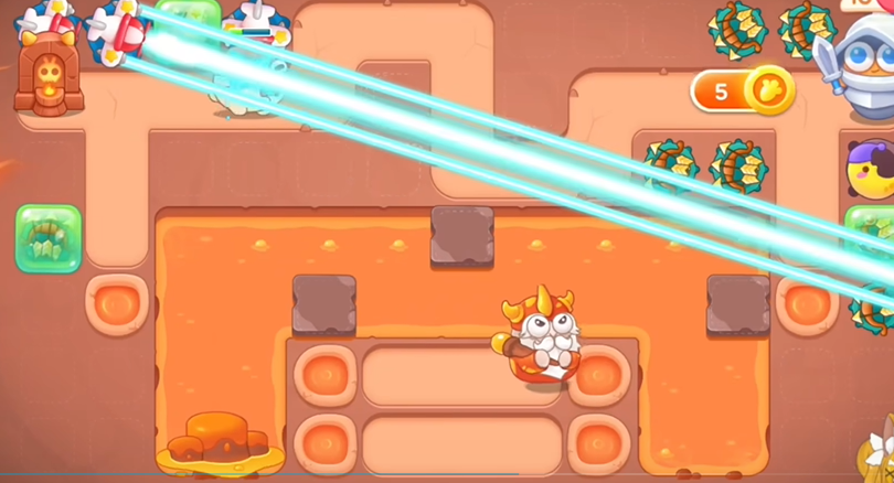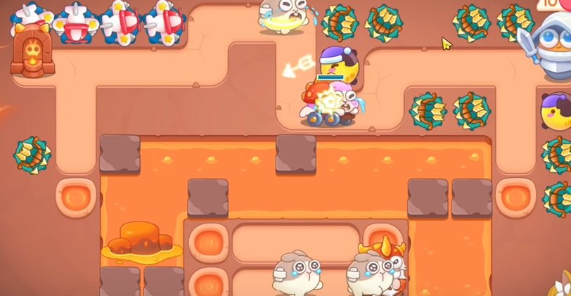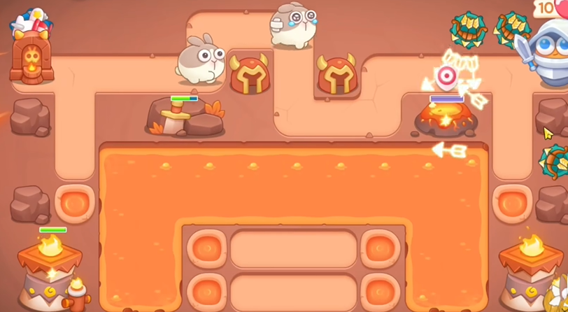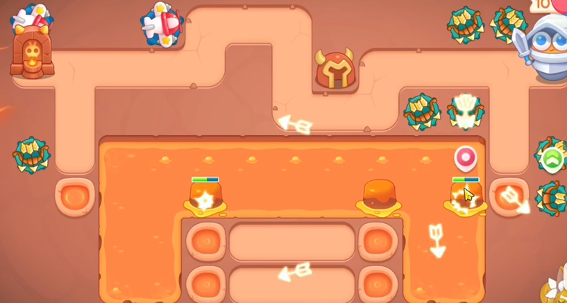 2、萝卜附近建立三个多重箭,优先清理火山,火山要快速清理,不然会爆发,清理完之后,继续清理周围障碍物。