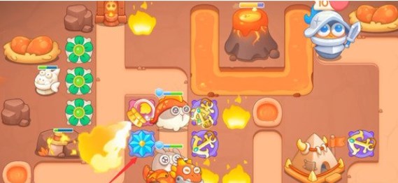1、开局在如图所示位置放置两个风扇塔,并将风扇塔升至满级,风扇塔可以快速清理旁边的障碍物。