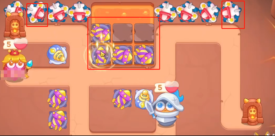 6、左上右上和中间平台补充炮塔,有钱就升级,这样就可以轻松过关。