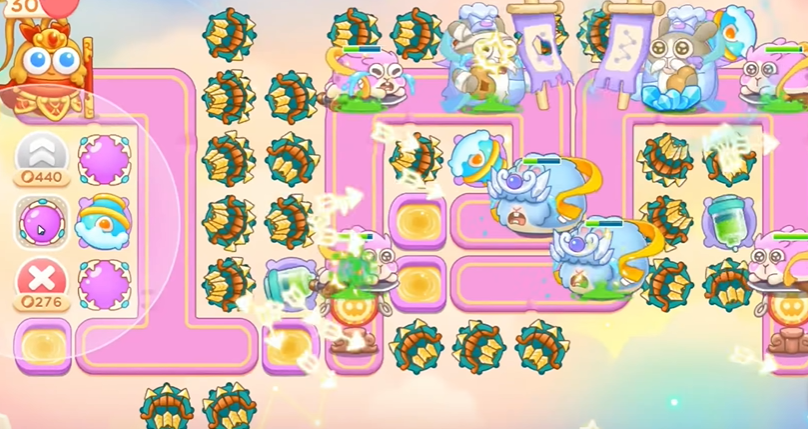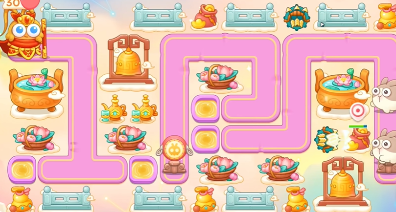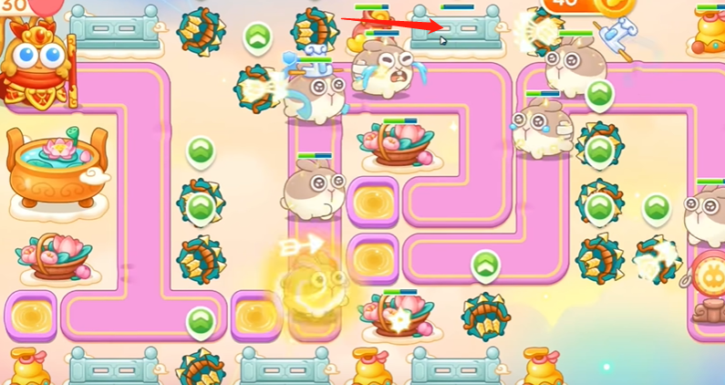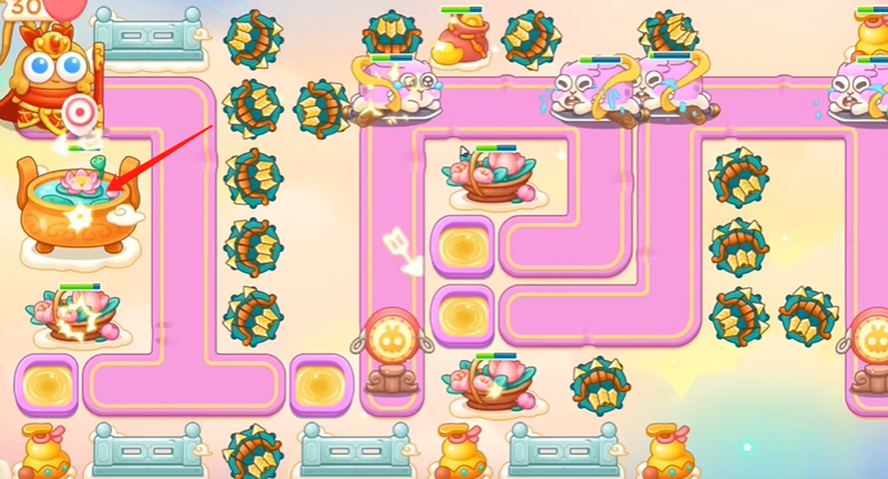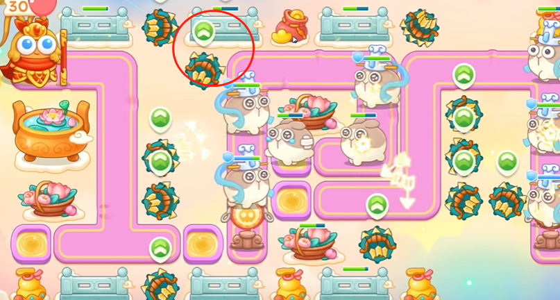 2、看见粉兔直接锁定,二级船锚升三级,左边兔子每个都锁定打。