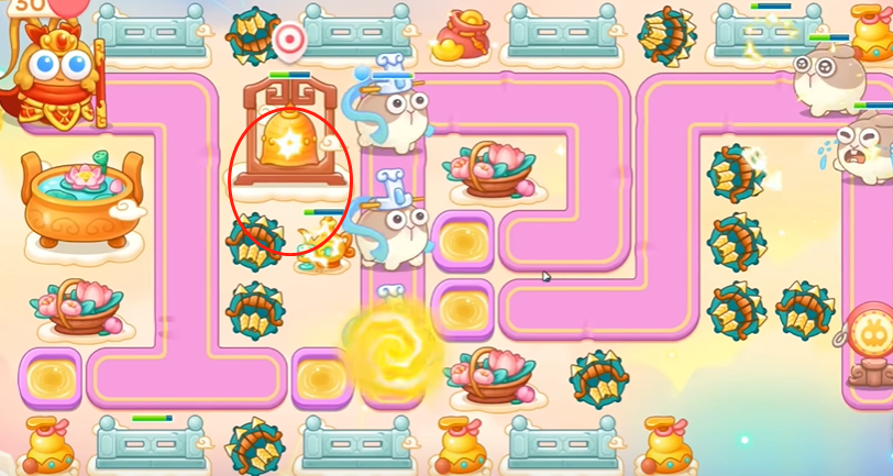 3、第一波最后一只兔子打到半血的时候就可以去打左边的大钟了,合理利用时间差;