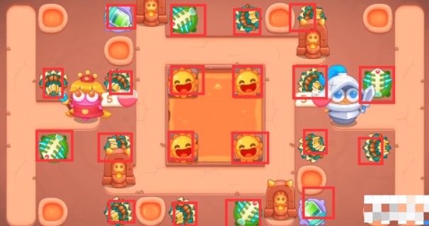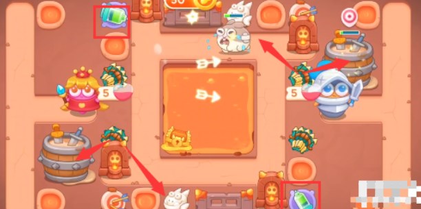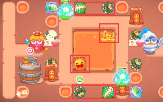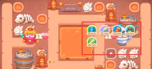 4、在各个区域都放置鱼刺,岩浆中的宝箱打开是太阳升满级。