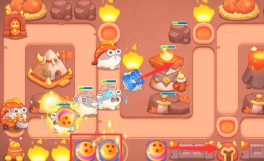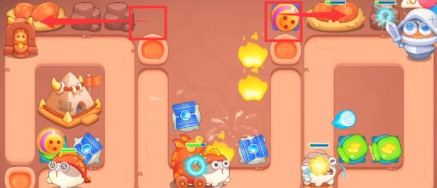 4、在每个区域都放置炮塔防御同时开图,在拐角处放置保龄球开图并且最大化输出。