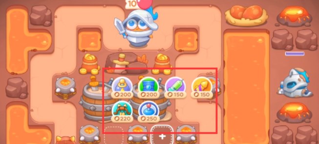 1、这一关可以使用的炮塔是:闪电炮、双菱塔、毒针、导弹、多重箭、雷达,这一关我们主要输出用多重箭。