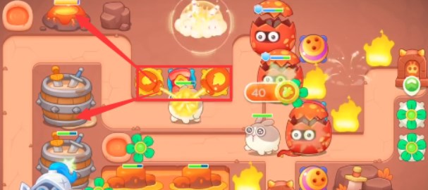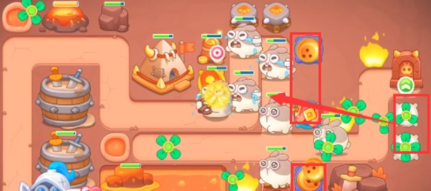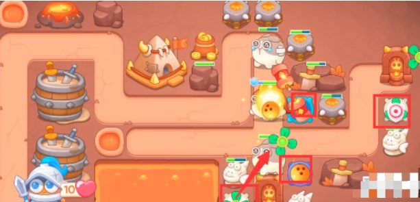 1、这一关可以使用的炮塔是:风扇、保龄球、鞭炮、火瓶,这一关我们主要输出用风扇。