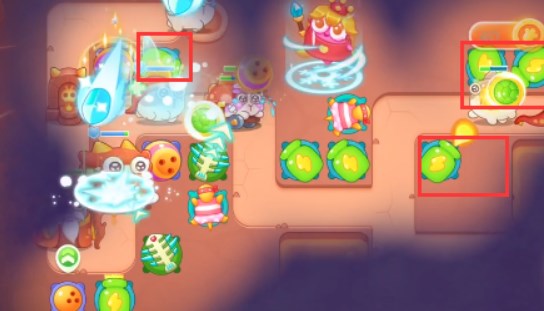 4、然后在右侧先放置普通炮塔清怪开图,公主有大就放大,将道具全清。