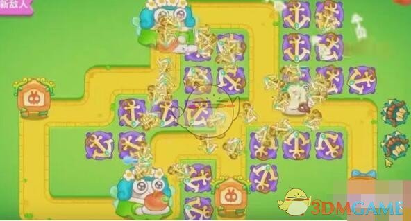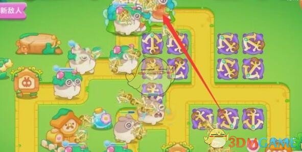 2、附近会生出萝蔓一样的道具,需要小伙伴们及时打掉,金币充足的话,可以将空出的位置放置船锚,随即锁定左边的大建筑,利用船锚的分裂性的,对其他道具进行打击;