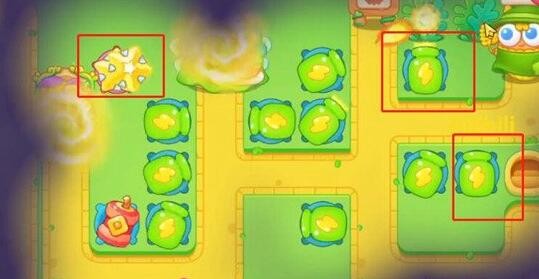 1、第一波把下方的瓶子塔升满级,然后再加一个瓶子塔升满级,之后清掉周边道具再加一个瓶子塔,随后再加一个。