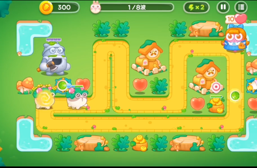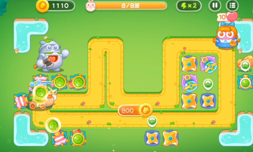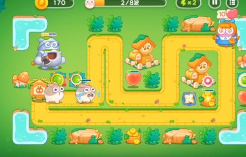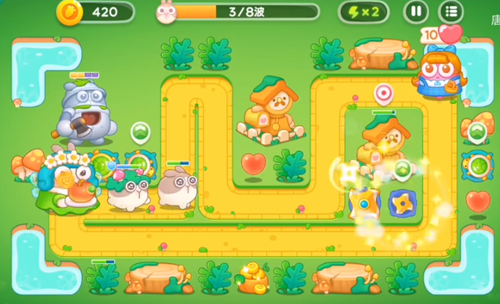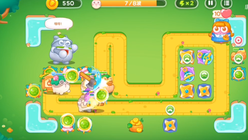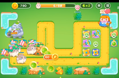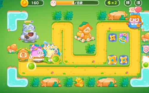 5、风扇塔是要开始攻击人偶了,然后是在左边的位置之中再增加上两个乌龟塔的。