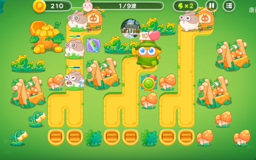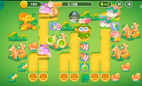 2、第二波对右边的毒针塔来进行升级,升级之后就进行攻击右边的兔子和障碍物。