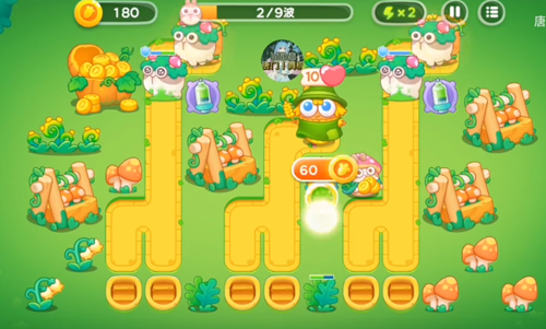 1、首先是在第一波先是摆放一个毒针塔,在右边的框内是有一个乌龟塔的。
