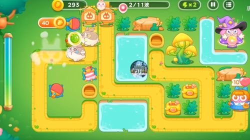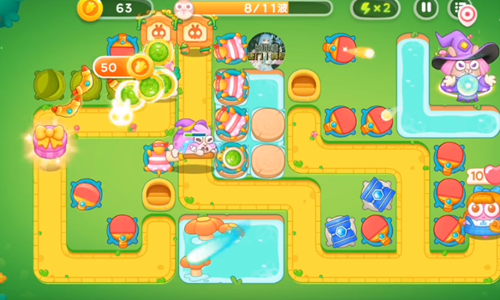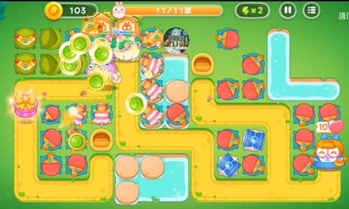 4、这一波是红色的塔炮来攻击右边的草,左边就直接攻击兔子。