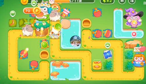 5、在右边道路的尽头来摆放上三个,有足够的金币就开始升级。