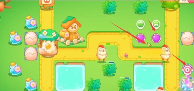 1.在如图所示位置放置一个大鸡蛋,并将大鸡蛋升至满级,大鸡蛋可以召唤出小鸡,增加我们清理障碍的速度