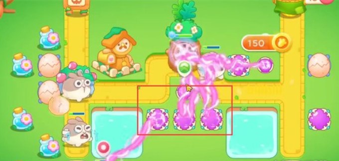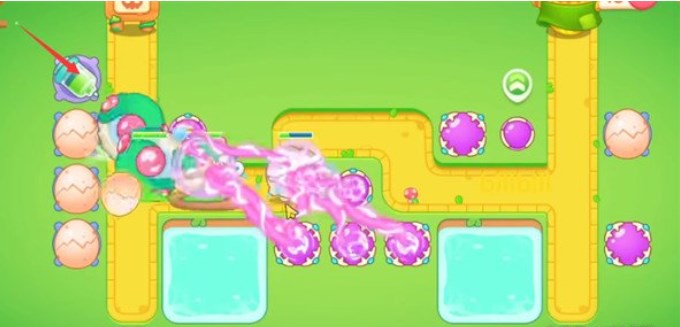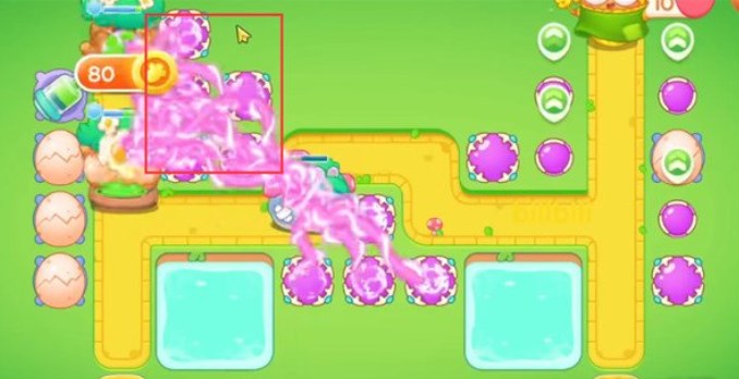 4.在如图所示方框所示处放置满魔法球,魔法球的持续高额攻击 可以对路径中的兔子及障碍都造成大量伤害,