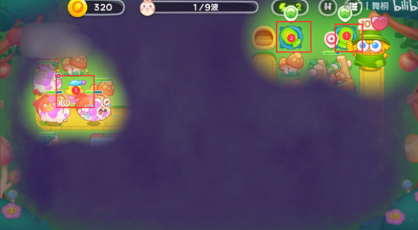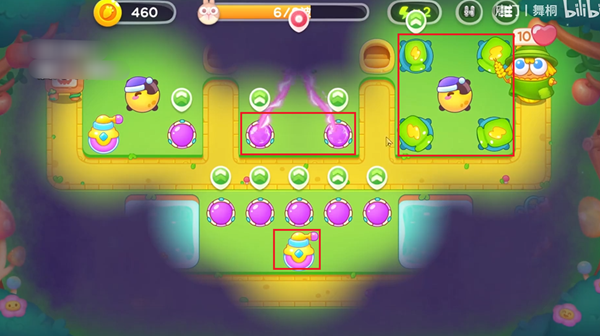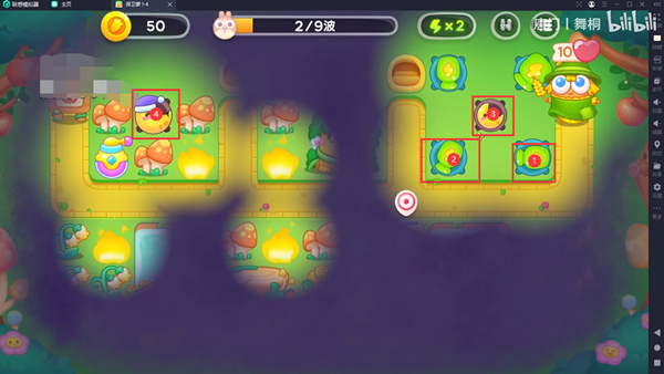 3、有钱先放炮台占视野,不用着急升级,后面钱多再升级,同时去清理道具,优先清理最下方的道具,然后放置魔法球。